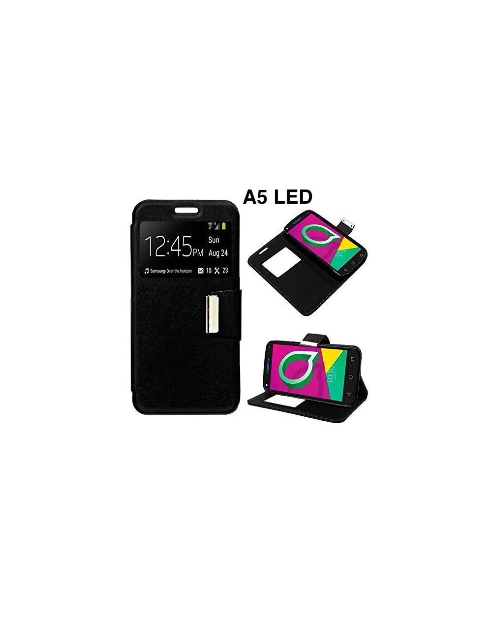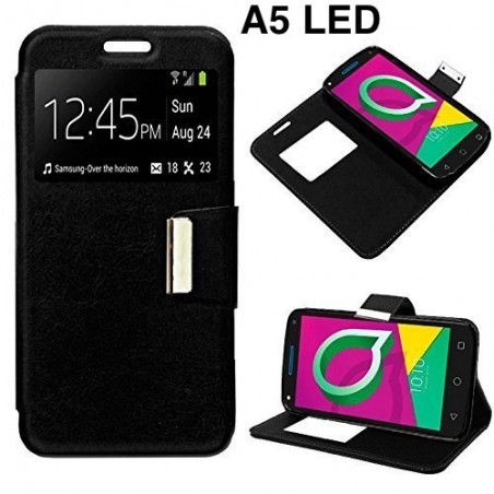 Funda Libro Negra Para Alcatel A5 Led con Soporte y Tarjetero.