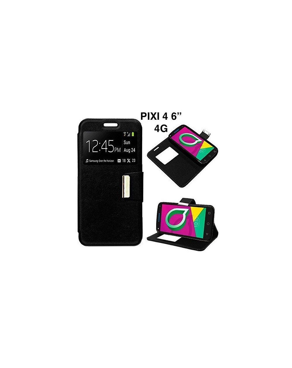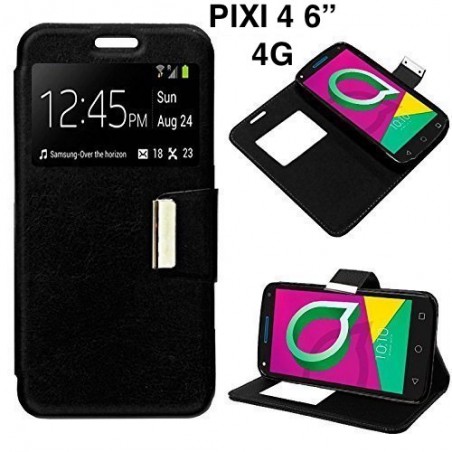 Funda Libro Negra Para Alcatel Pixi 4 6" 4G con Soporte y Tarjetero.
