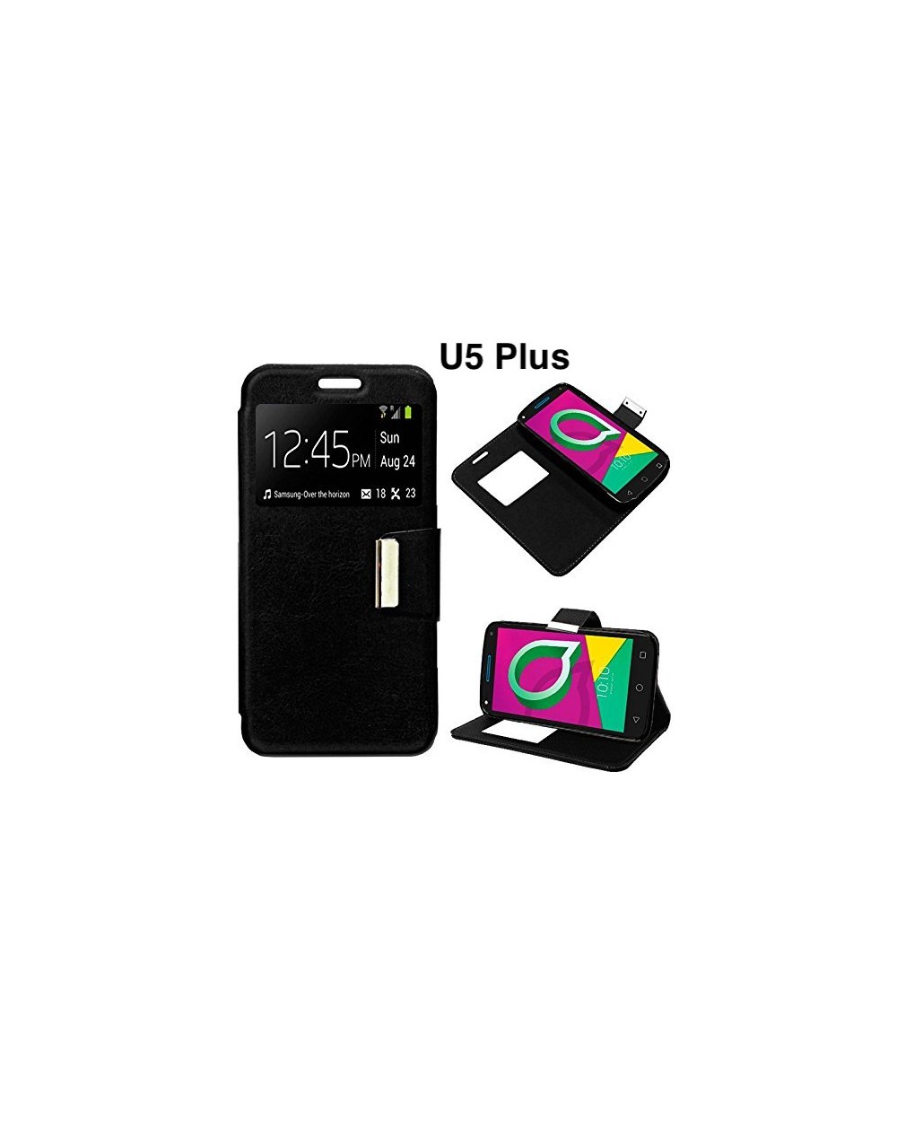 Funda Libro Negra Para Alcatel U5 Plus con Soporte y Tarjetero.