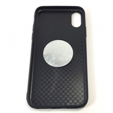 La Funda Con Motivo Bordado iPhone X tiene en su interior una chapa para poder usarla en los soportes de imán habituales en vehículos, ya que al ser de tela no pegarían en el exterior.