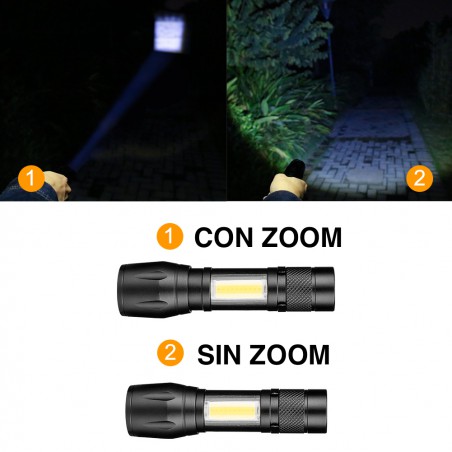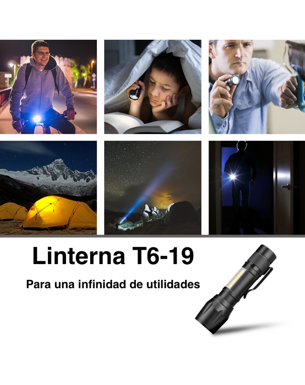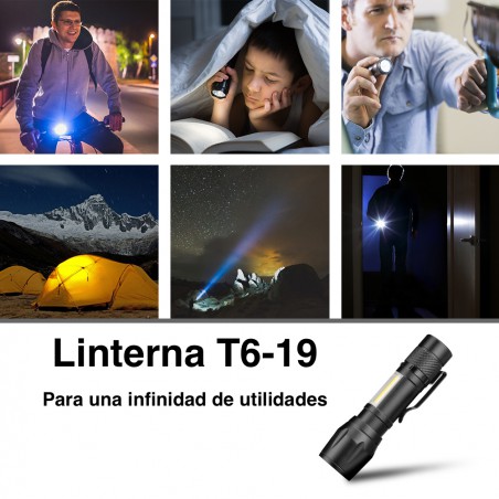 Linterna T6-19 recargable, de alta luminosidad y duración.