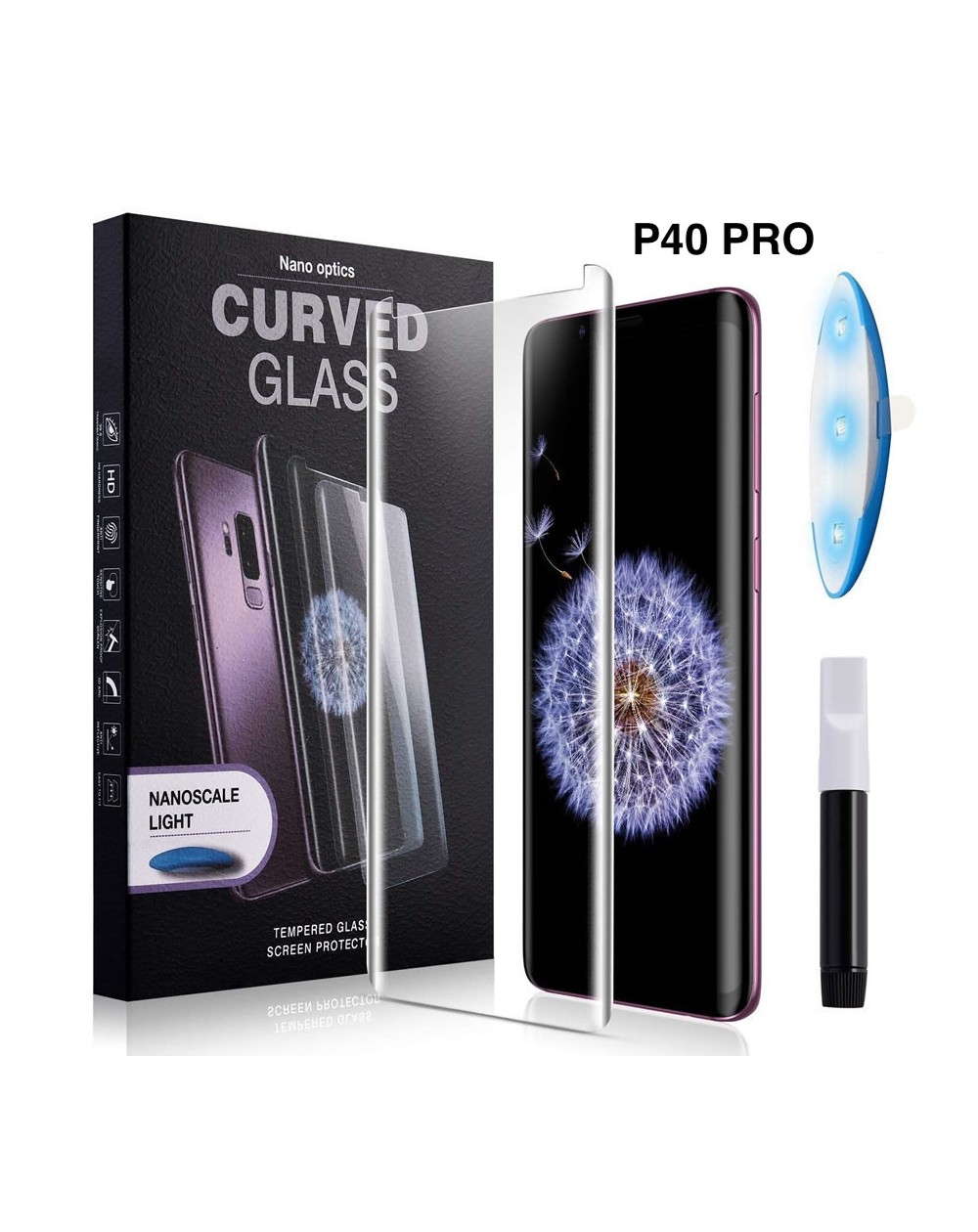 Pantalla protectora de cristal templado fijado con luz UV para Huawei P40 Pro.