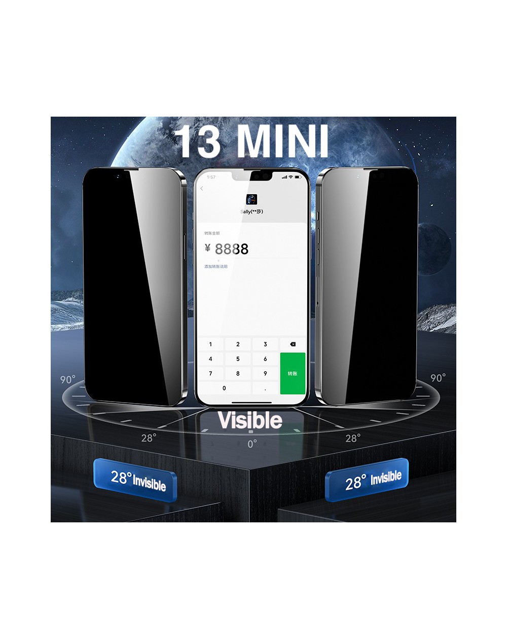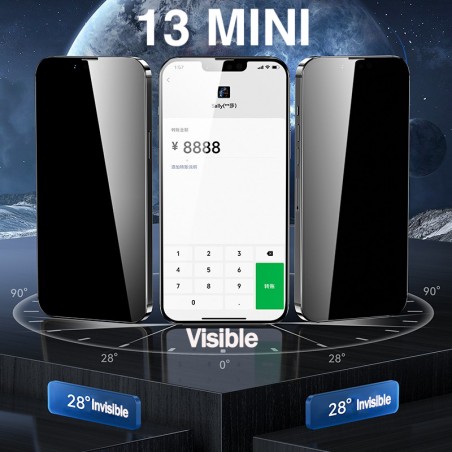 Con el Cristal Templado Antiespía Para iPhone 13 Mini podrá disfrutar de una total protección de la información de su pantalla. Quedará fuera del alcance de otras personas que quieran verla desde otros ángulos de visión. Debido a sus materiales sólo se puede ver la información de la pantalla desde un ángulo frontal.