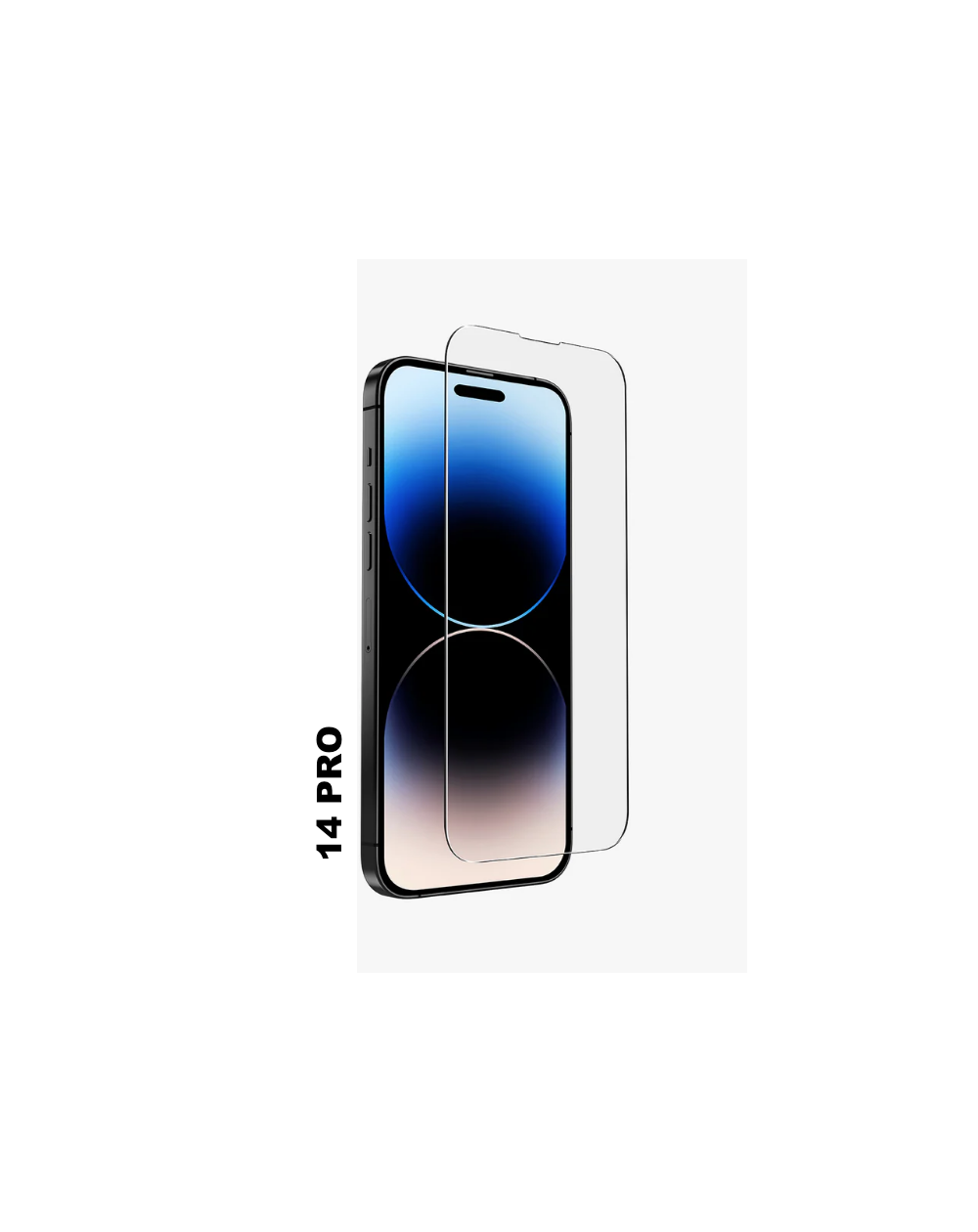 Pantalla protectora de cristal templado transparente para iPhone 14 Pro.