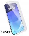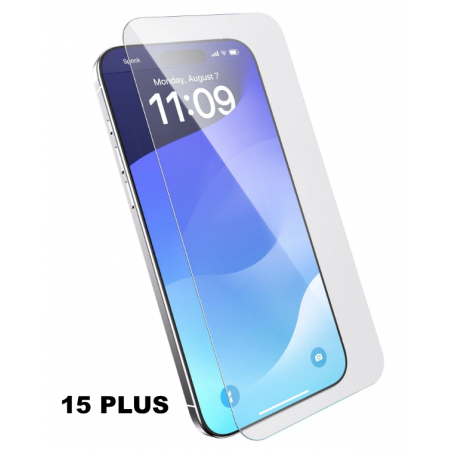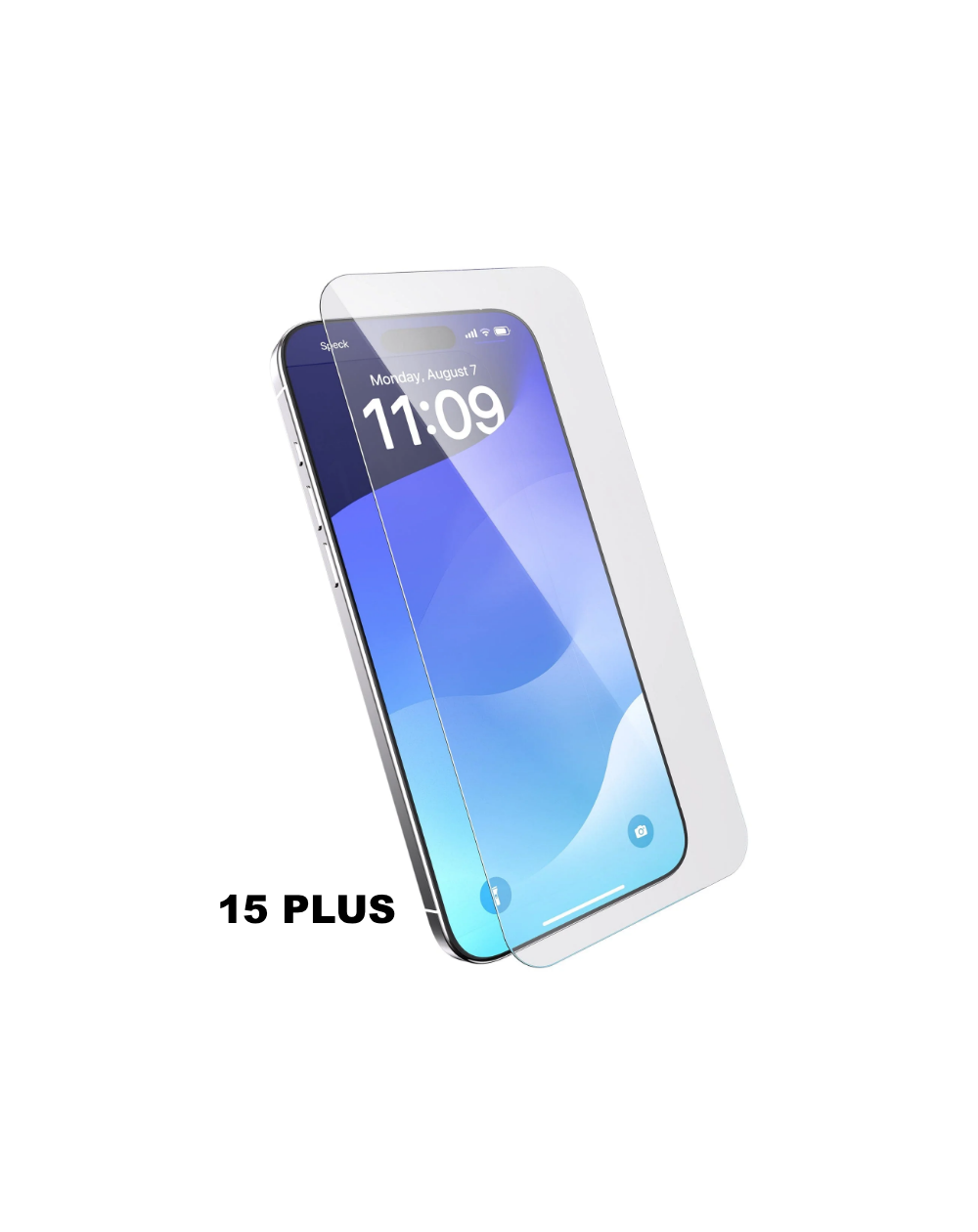 Pantalla protectora de cristal templado transparente para iPhone 15 Plus.