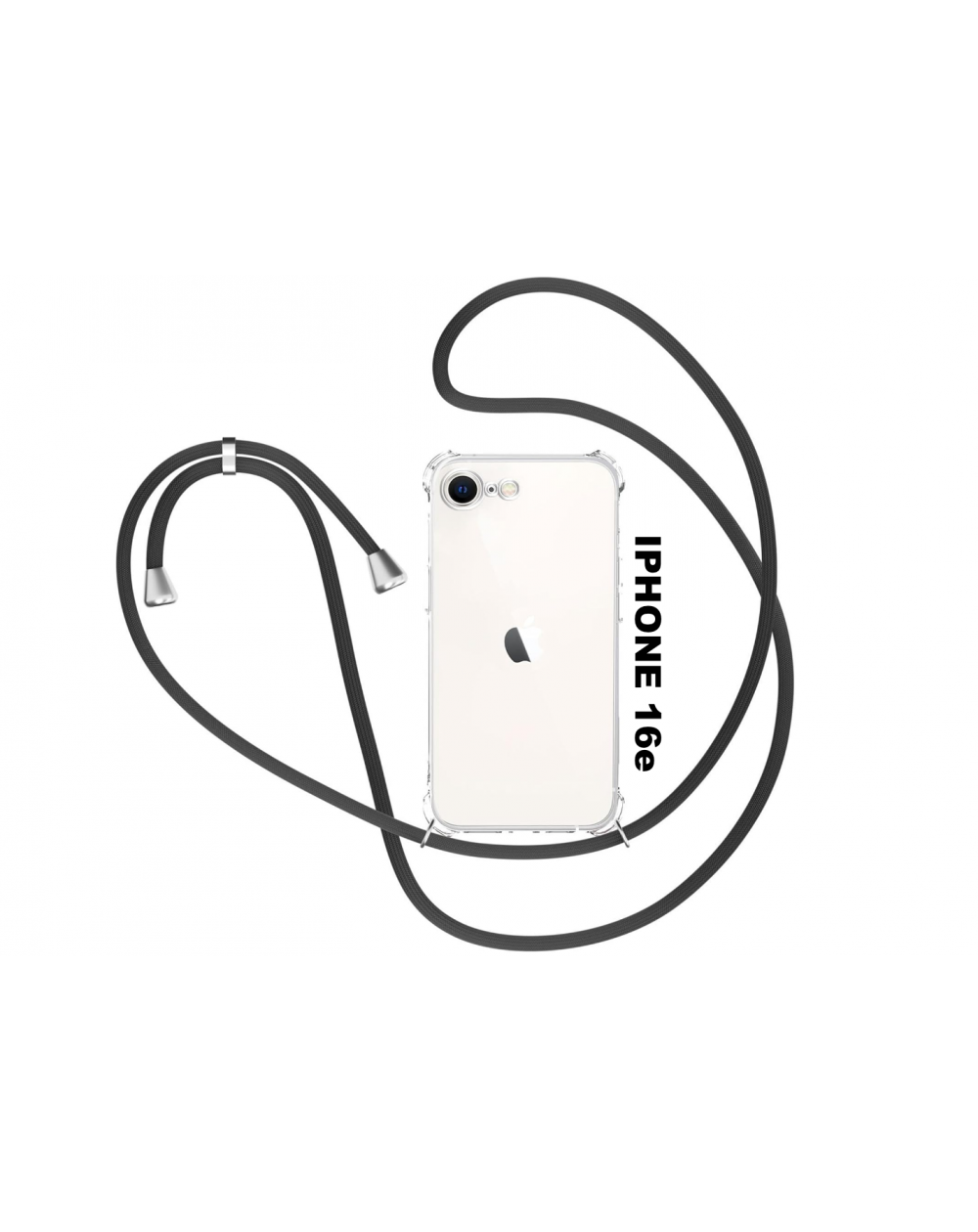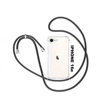 La Funda Con Cuerda Reforzada Para iPhone 16e está hecha de un material ligero y cuerda negra de nylon ajustable.