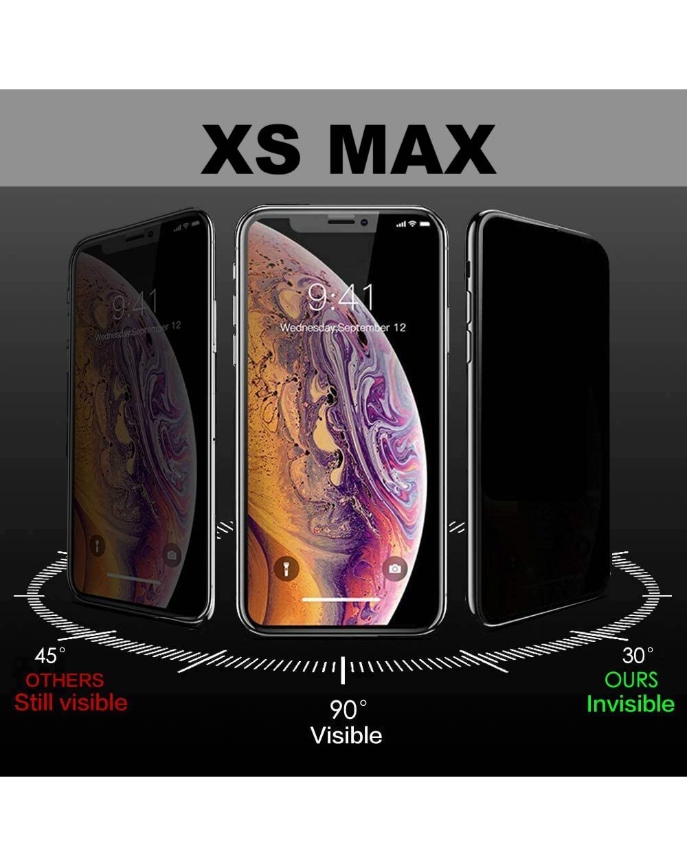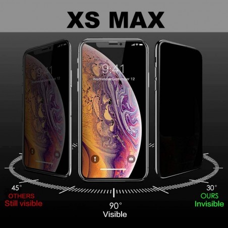 Con el Cristal Templado Antiespía Para iPhone XS Max podrá disfrutar de una total protección de la información de su pantalla. Quedará fuera del alcance de otras personas que quieran verla desde otros ángulos de visión. Debido a sus materiales sólo se puede ver la información de la pantalla desde un ángulo frontal.