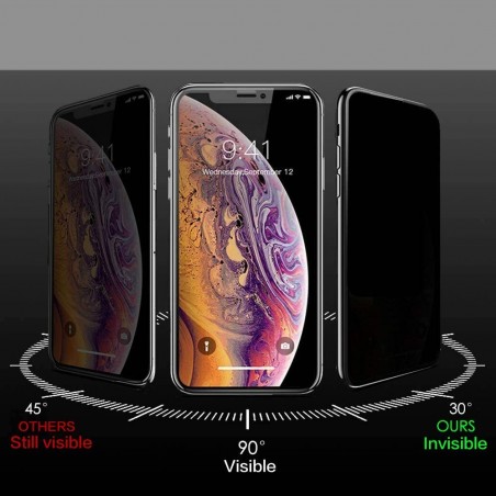 Con el Cristal Templado Antiespía Para iPhone X/XS podrá disfrutar de una total protección de la información de su pantalla. Quedará fuera del alcance de otras personas que quieran verla desde otros ángulos de visión. Debido a sus materiales sólo se puede ver la información de la pantalla desde un ángulo frontal.