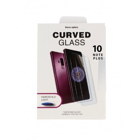 Pantalla protectora de cristal templado fijado con luz UV para Samsung Note 10 +.