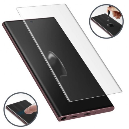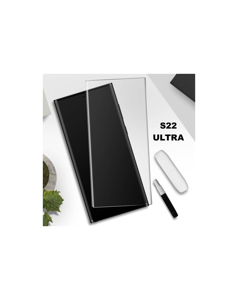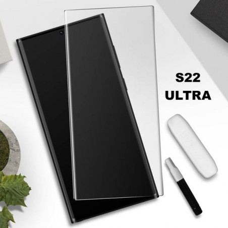 Pantalla protectora de cristal templado fijado con luz UV para Samsung S22 Ultra.