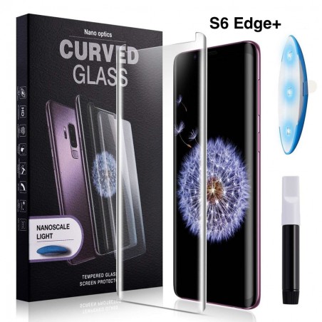 Pantalla protectora de cristal templado fijado con luz UV para Samsung S6 Edge Plus.
