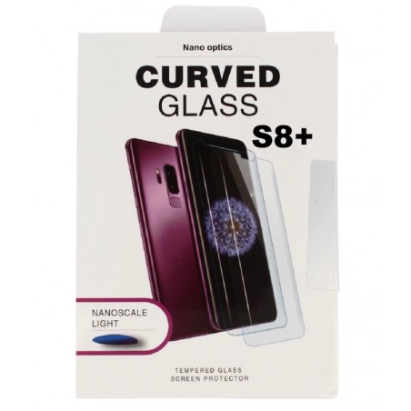 Pantalla protectora de cristal templado fijado con luz UV para Samsung S8 Plus.
